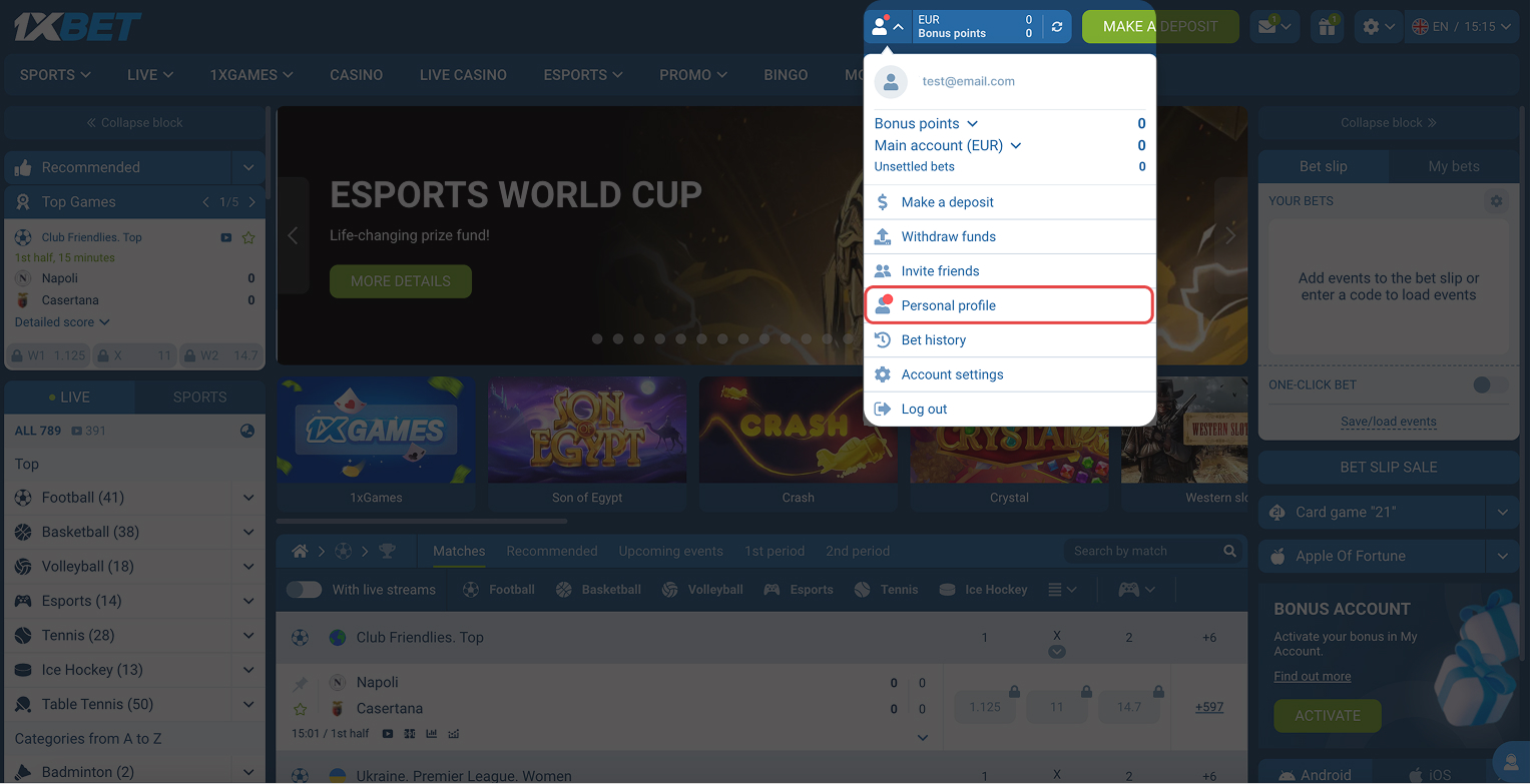 №1 Via your account on the 1xBet website