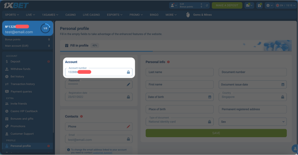 Log in to the 1xBet website and open your profile (the icon in the top right corner).